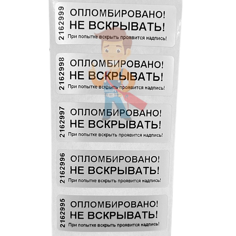 При попытке снятия пломбы проявляется надпись, которую невозможно смыть или удалить.